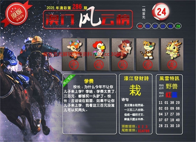 285期〖风水老师〗开:马24错